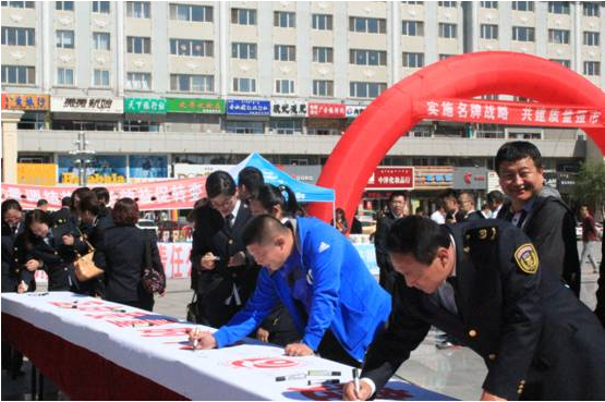 圖為質(zhì)量月萬(wàn)人簽名儀式